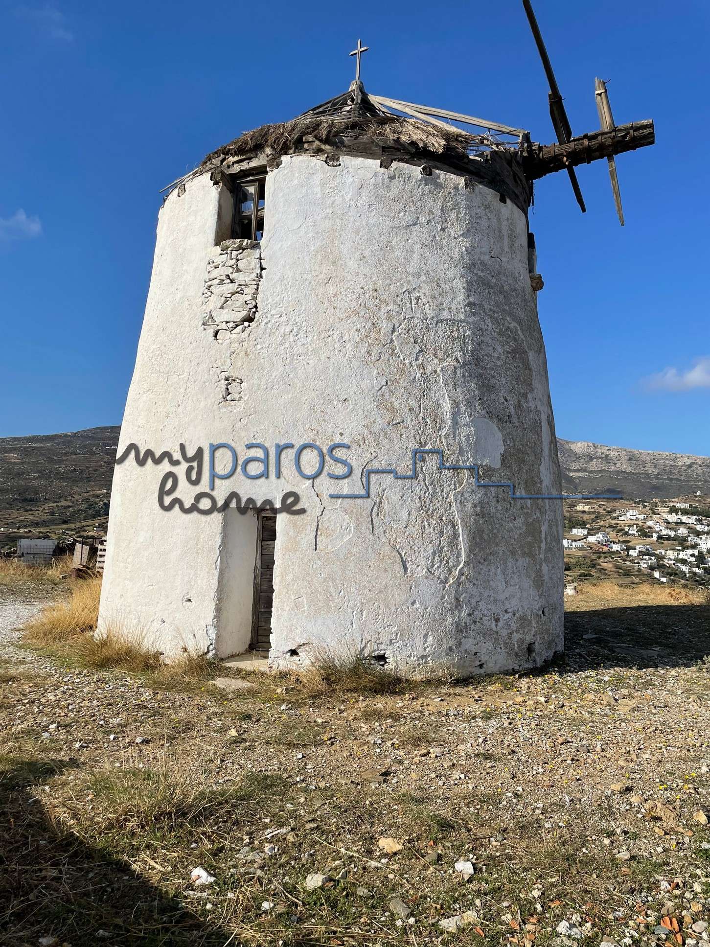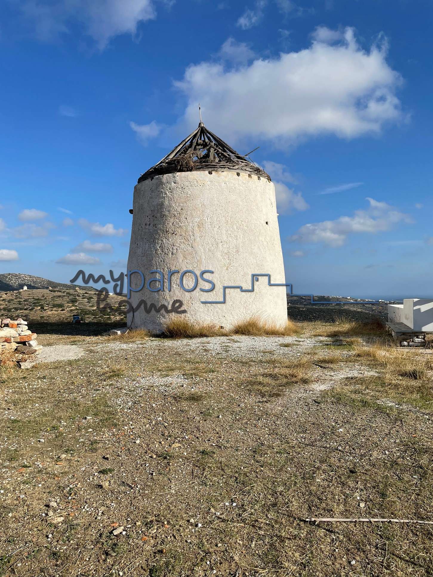 Γ455 ΑΓΡΟΤΕΜΑΧΙΟ ΣΤΙΣ ΛΕΥΚΕΣ ΠΑΡΟΣ ΜΕ ΠΕΤΡΙΝΟ ΠΑΡΑΔΟΣΙΑΚΟ ΑΝΕΜΟΜΥΛΟ